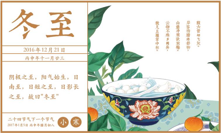 “至”是極致的意思,冬藏之氣至此而極。它包含三層意思:陰寒達到極致,天最冷;陽氣始至,上升才逼天氣寒徹;太陽行至最南處,所以晝最短,夜最長。
