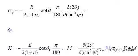 其中K是只與材料本質、選定衍射面HKL有關的常數,當測量的樣品是同一種材料,而且選定的衍射面指數相同時,K為定值,稱為應力系數。M是(2θ)-sin2ψ直線的斜率,對同一衍射面HKL,選擇一組ψ值(0°、15°、30°、45°),測量相應的(2θ)ψ以(2θ)-sin2ψ作圖,并以最小二乘法求得斜率M,就可計算出應力 (φ是試樣平面內選定主應力方向后,測得的應力與主應力方向的夾角)。由于K<0,所以,M<0時,為拉應力,M>0時為壓應力,而M=0時無應力存在。